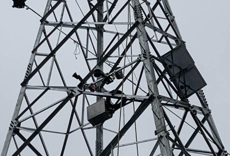 “再拉高一點,好好好,現(xiàn)在保持不動”,這是我司(深圳市特力康科技有限公司)工程師楊工在廣西安裝輸電線路隱患立體防護設(shè)備時,塔上隊友通過對講機通過塔下吊升主機的相關(guān)人員拉升主機高度,以便主機與角鐵達(dá)到適當(dāng)位置,方便進行支架的固定。