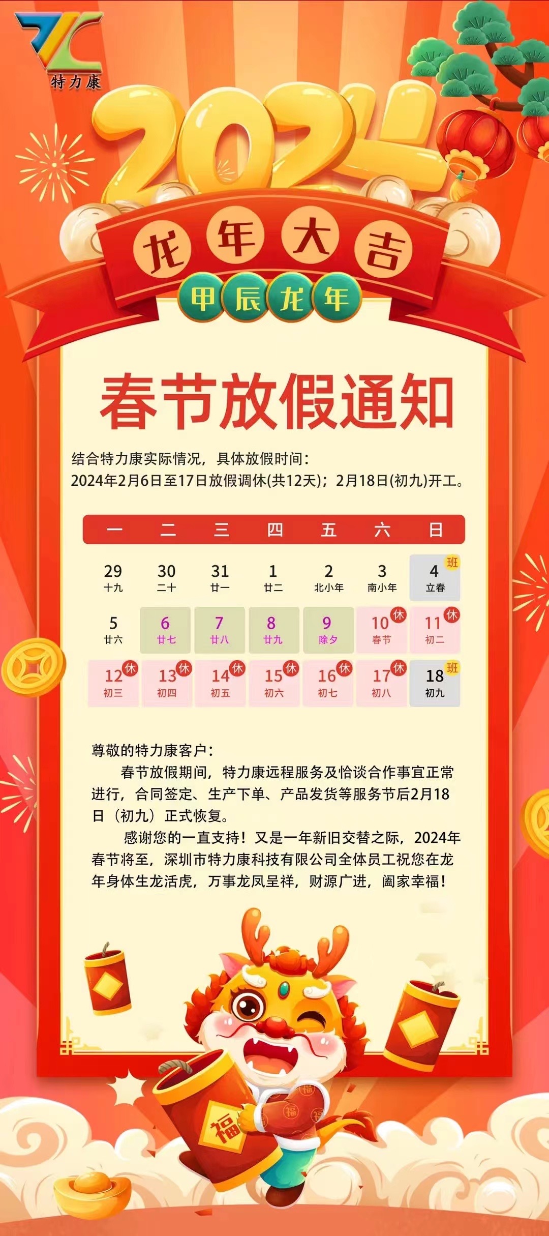 特力康公司致新老客戶:新春祝福與2024年春節(jié)放假通知