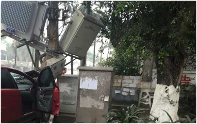 前不久,廣西某地發(fā)生了一起汽車撞上路邊變電箱的事故,在一轉(zhuǎn)彎處,由于視覺盲區(qū)原因,司機撞上了路邊的高壓電線桿,其上邊的變電箱也搖搖欲墜,導致附近片區(qū)大面積停電,萬幸的是現(xiàn)場并未有人員傷亡。