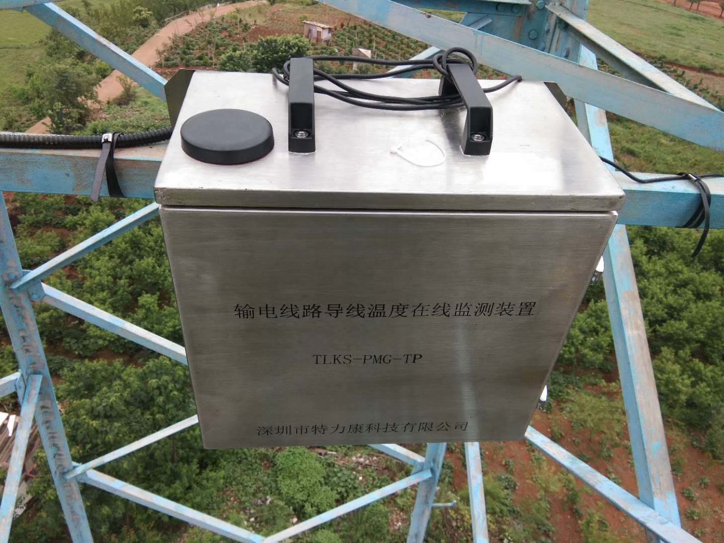 根據(jù)以上溫度監(jiān)測(cè)需求和監(jiān)測(cè)對(duì)象,結(jié)合現(xiàn)在電網(wǎng)的智能化管理、以及智慧線路建設(shè)的要求,深圳市特力康科技有限公司研發(fā)了“輸電線路溫度在線監(jiān)測(cè)裝置”。輸電線路溫度在線監(jiān)測(cè)裝置的溫度傳感器是高精度型的,能夠?qū)?dǎo)線、夾具進(jìn)行測(cè)量,并將測(cè)量結(jié)果通過(guò)無(wú)線網(wǎng)絡(luò)上報(bào)至監(jiān)控中心。