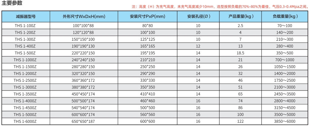 THS1氣囊型減振器使用耐用性極強的氣囊型空氣彈簧,使用壽命長,重量輕。