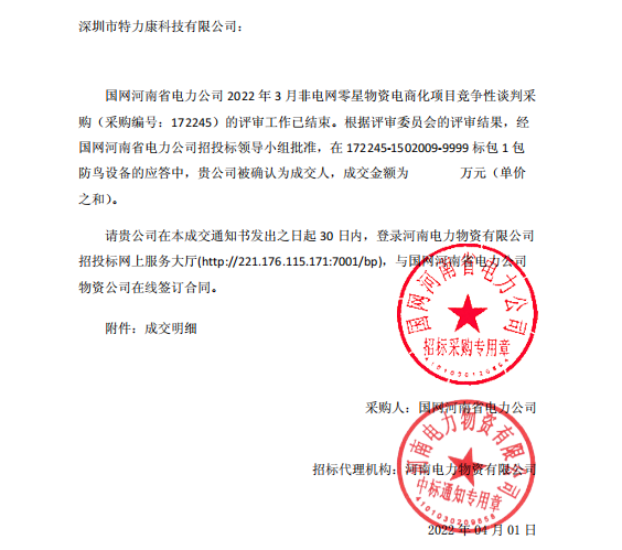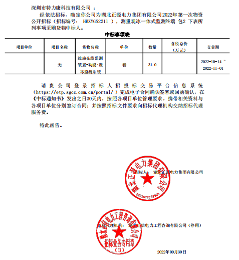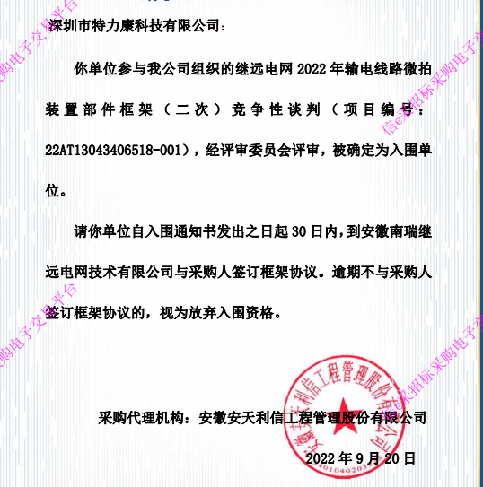 特力康中標國網(wǎng)黑龍江送變電工程公司的2024年度第18次物資類競爭性談判采購項目——慶陽驅鳥器物資框 特力康中標國網(wǎng)甘肅省電力公司省管產(chǎn)業(yè)單位2024年第五次物資競爭性談判授權采購項目 中標喜訊:深圳市特力康科技有限公司成功入圍許繼集團綜合能源公司輸電線路視頻在線監(jiān)測裝置模塊集采項目 中標喜訊:特力康成功中標國網(wǎng)重慶市電力公司渝中一片區(qū)項目 特力康成功中標國網(wǎng)天津市電力公司2024年第二次?物?資招標項目 特力康中標國網(wǎng)安徽省電力有限公司蕪湖供電公司2024年3月非物質采購項目 內(nèi)蒙電網(wǎng)裝上 “舞動監(jiān)測眼”:特力康輸電線路防舞動監(jiān)測系統(tǒng)守護線路安全 浙江電力裝上“氣象哨兵”:特力康裝置守護電網(wǎng)應對臺風暴雨 蜀道巡線不用“爬”:特力康視頻在線監(jiān)測裝置守護四川輸電鐵塔 風雪中的 “防冰哨兵”:內(nèi)蒙古電力用特力康監(jiān)測系統(tǒng)筑牢覆冰防線 雙軸感知護塔穩(wěn):山西電力用特力康裝置破解采空區(qū)傾斜難題 江西電力裝上 “智能防鳥衛(wèi)士”—— 特力康綜合激光驅鳥器破解湖區(qū)變電站鳥害難題 破解巡檢難題:貴州電力用特力康 AI 微拍裝置,精準捕捉線路隱性隱患 精準捕捉 “微氣象”:浙江電力用特力康預警系統(tǒng)筑牢電網(wǎng)氣候防線 守護 “電力咽喉”:湖南電力投用百套特力康三跨 4G 監(jiān)控球,筑牢安全防線 貴州電力裝特力康電網(wǎng)架空線路覆冰監(jiān)測系統(tǒng),精準防冰保電網(wǎng)過冬? 寧夏配電線路安裝了我司防外破電子化智能警示牌