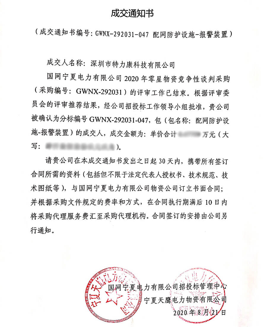 特力康中標(biāo)國(guó)網(wǎng)黑龍江送變電工程公司的2024年度第18次物資類競(jìng)爭(zhēng)性談判采購(gòu)項(xiàng)目——慶陽(yáng)驅(qū)鳥器物資框 特力康中標(biāo)國(guó)網(wǎng)甘肅省電力公司省管產(chǎn)業(yè)單位2024年第五次物資競(jìng)爭(zhēng)性談判授權(quán)采購(gòu)項(xiàng)目 中標(biāo)喜訊:深圳市特力康科技有限公司成功入圍許繼集團(tuán)綜合能源公司輸電線路視頻在線監(jiān)測(cè)裝置模塊集采項(xiàng)目 中標(biāo)喜訊:特力康成功中標(biāo)國(guó)網(wǎng)重慶市電力公司渝中一片區(qū)項(xiàng)目 特力康成功中標(biāo)國(guó)網(wǎng)天津市電力公司2024年第二次?物?資招標(biāo)項(xiàng)目 特力康中標(biāo)國(guó)網(wǎng)安徽省電力有限公司蕪湖供電公司2024年3月非物質(zhì)采購(gòu)項(xiàng)目 內(nèi)蒙電網(wǎng)裝上 “舞動(dòng)監(jiān)測(cè)眼”:特力康輸電線路防舞動(dòng)監(jiān)測(cè)系統(tǒng)守護(hù)線路安全 浙江電力裝上“氣象哨兵”:特力康裝置守護(hù)電網(wǎng)應(yīng)對(duì)臺(tái)風(fēng)暴雨 蜀道巡線不用“爬”:特力康視頻在線監(jiān)測(cè)裝置守護(hù)四川輸電鐵塔 風(fēng)雪中的 “防冰哨兵”:內(nèi)蒙古電力用特力康監(jiān)測(cè)系統(tǒng)筑牢覆冰防線 雙軸感知護(hù)塔穩(wěn):山西電力用特力康裝置破解采空區(qū)傾斜難題 江西電力裝上 “智能防鳥衛(wèi)士”—— 特力康綜合激光驅(qū)鳥器破解湖區(qū)變電站鳥害難題 破解巡檢難題:貴州電力用特力康 AI 微拍裝置,精準(zhǔn)捕捉線路隱性隱患 精準(zhǔn)捕捉 “微氣象”:浙江電力用特力康預(yù)警系統(tǒng)筑牢電網(wǎng)氣候防線 守護(hù) “電力咽喉”:湖南電力投用百套特力康三跨 4G 監(jiān)控球,筑牢安全防線 貴州電力裝特力康電網(wǎng)架空線路覆冰監(jiān)測(cè)系統(tǒng),精準(zhǔn)防冰保電網(wǎng)過冬? 寧夏配電線路安裝了我司防外破電子化智能警示牌