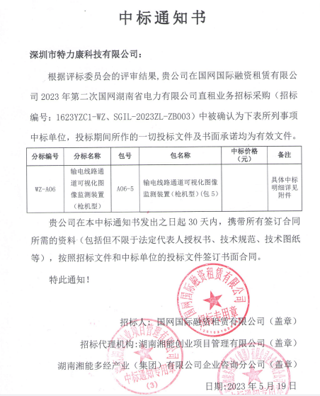 特力康中標(biāo)國(guó)網(wǎng)黑龍江送變電工程公司的2024年度第18次物資類競(jìng)爭(zhēng)性談判采購(gòu)項(xiàng)目——慶陽(yáng)驅(qū)鳥(niǎo)器物資框 特力康中標(biāo)國(guó)網(wǎng)甘肅省電力公司省管產(chǎn)業(yè)單位2024年第五次物資競(jìng)爭(zhēng)性談判授權(quán)采購(gòu)項(xiàng)目 中標(biāo)喜訊:深圳市特力康科技有限公司成功入圍許繼集團(tuán)綜合能源公司輸電線路視頻在線監(jiān)測(cè)裝置模塊集采項(xiàng)目 中標(biāo)喜訊:特力康成功中標(biāo)國(guó)網(wǎng)重慶市電力公司渝中一片區(qū)項(xiàng)目 特力康成功中標(biāo)國(guó)網(wǎng)天津市電力公司2024年第二次?物?資招標(biāo)項(xiàng)目 特力康中標(biāo)國(guó)網(wǎng)安徽省電力有限公司蕪湖供電公司2024年3月非物質(zhì)采購(gòu)項(xiàng)目 內(nèi)蒙電網(wǎng)裝上 “舞動(dòng)監(jiān)測(cè)眼”:特力康輸電線路防舞動(dòng)監(jiān)測(cè)系統(tǒng)守護(hù)線路安全 浙江電力裝上“氣象哨兵”:特力康裝置守護(hù)電網(wǎng)應(yīng)對(duì)臺(tái)風(fēng)暴雨 蜀道巡線不用“爬”:特力康視頻在線監(jiān)測(cè)裝置守護(hù)四川輸電鐵塔 風(fēng)雪中的 “防冰哨兵”:內(nèi)蒙古電力用特力康監(jiān)測(cè)系統(tǒng)筑牢覆冰防線 雙軸感知護(hù)塔穩(wěn):山西電力用特力康裝置破解采空區(qū)傾斜難題 江西電力裝上 “智能防鳥(niǎo)衛(wèi)士”—— 特力康綜合激光驅(qū)鳥(niǎo)器破解湖區(qū)變電站鳥(niǎo)害難題 破解巡檢難題:貴州電力用特力康 AI 微拍裝置,精準(zhǔn)捕捉線路隱性隱患 精準(zhǔn)捕捉 “微氣象”:浙江電力用特力康預(yù)警系統(tǒng)筑牢電網(wǎng)氣候防線 守護(hù) “電力咽喉”:湖南電力投用百套特力康三跨 4G 監(jiān)控球,筑牢安全防線 貴州電力裝特力康電網(wǎng)架空線路覆冰監(jiān)測(cè)系統(tǒng),精準(zhǔn)防冰保電網(wǎng)過(guò)冬? 寧夏配電線路安裝了我司防外破電子化智能警示牌