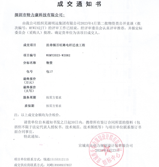 特力康中標(biāo)國網(wǎng)黑龍江送變電工程公司的2024年度第18次物資類競(jìng)爭(zhēng)性談判采購項(xiàng)目——慶陽驅(qū)鳥器物資框 特力康中標(biāo)國網(wǎng)甘肅省電力公司省管產(chǎn)業(yè)單位2024年第五次物資競(jìng)爭(zhēng)性談判授權(quán)采購項(xiàng)目 中標(biāo)喜訊:深圳市特力康科技有限公司成功入圍許繼集團(tuán)綜合能源公司輸電線路視頻在線監(jiān)測(cè)裝置模塊集采項(xiàng)目 中標(biāo)喜訊:特力康成功中標(biāo)國網(wǎng)重慶市電力公司渝中一片區(qū)項(xiàng)目 特力康成功中標(biāo)國網(wǎng)天津市電力公司2024年第二次?物?資招標(biāo)項(xiàng)目 特力康中標(biāo)國網(wǎng)安徽省電力有限公司蕪湖供電公司2024年3月非物質(zhì)采購項(xiàng)目 內(nèi)蒙電網(wǎng)裝上 “舞動(dòng)監(jiān)測(cè)眼”:特力康輸電線路防舞動(dòng)監(jiān)測(cè)系統(tǒng)守護(hù)線路安全 浙江電力裝上“氣象哨兵”:特力康裝置守護(hù)電網(wǎng)應(yīng)對(duì)臺(tái)風(fēng)暴雨 蜀道巡線不用“爬”:特力康視頻在線監(jiān)測(cè)裝置守護(hù)四川輸電鐵塔 風(fēng)雪中的 “防冰哨兵”:內(nèi)蒙古電力用特力康監(jiān)測(cè)系統(tǒng)筑牢覆冰防線 雙軸感知護(hù)塔穩(wěn):山西電力用特力康裝置破解采空區(qū)傾斜難題 江西電力裝上 “智能防鳥衛(wèi)士”—— 特力康綜合激光驅(qū)鳥器破解湖區(qū)變電站鳥害難題 破解巡檢難題:貴州電力用特力康 AI 微拍裝置,精準(zhǔn)捕捉線路隱性隱患 精準(zhǔn)捕捉 “微氣象”:浙江電力用特力康預(yù)警系統(tǒng)筑牢電網(wǎng)氣候防線 守護(hù) “電力咽喉”:湖南電力投用百套特力康三跨 4G 監(jiān)控球,筑牢安全防線 貴州電力裝特力康電網(wǎng)架空線路覆冰監(jiān)測(cè)系統(tǒng),精準(zhǔn)防冰保電網(wǎng)過冬? 寧夏配電線路安裝了我司防外破電子化智能警示牌